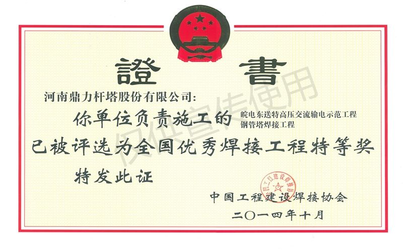 Photovoltaic Engineering Outstanding Enterprise Honorary Certificate
